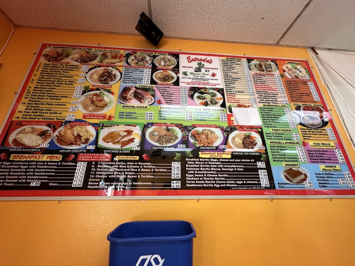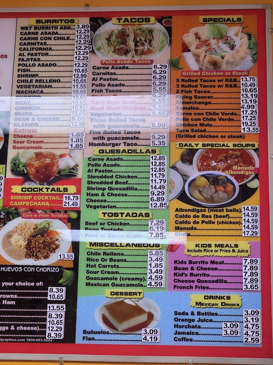The selection focuses on familiar Mexican fast food, making it suitable for casual dining or takeout. Customers often use the menu for quick ordering of meals ranging from light bites to more filling dishes throughout the day, including breakfast options.