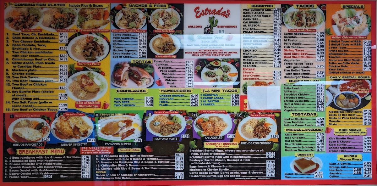 - Combination Plates: These plates typically include a mix of classic Mexican items such as tacos, enchiladas, chile rellenos, tostadas, and rice & beans. They provide a complete meal option with familiar staples available at set prices.